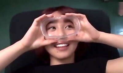 Japanese girl gets cum goggles treatment