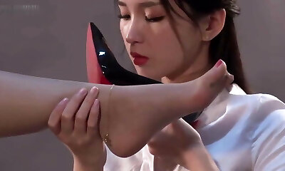 Chinese women in stockings blowjob footjob creampie fetish handjob