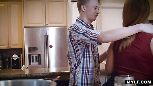 Mature red head Lotty Blue hooks up with one young nextdoor dude