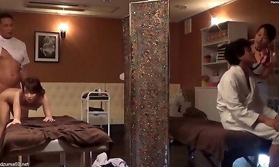 Masseur secretly fucked with hot wife next her spouse